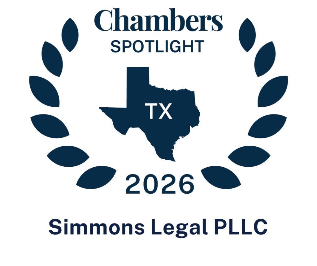 Simmons Legal PLLC has been ranked in Chambers USA Texas Spotlight Guide 2026 and recognized as a leading small to medium-sized law firm offering a credible alternative to Big Law. A Chambers Spotlight ranking is a prestigious recognition. Less than 1% of U.S. law firms are recognized by Chambers, reflecting the firm’s exceptional expertise and quality of work.